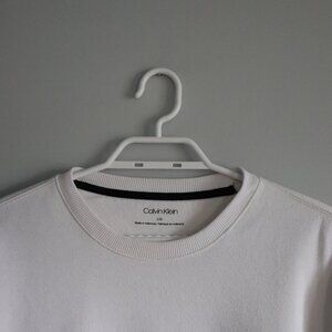 Calvin Klein Unisex White Sz L Pull On Crew Fleece Stretch Long Sleeve Sweater