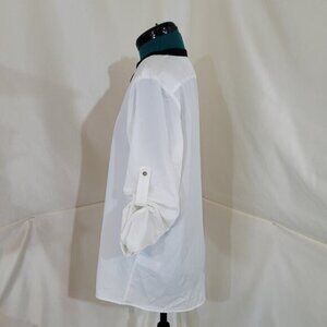 Calvin Klein White Blouse with Center Black Stripe - Size Large
