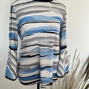 Calvin Klein White Blue and Gray statement sleeves 70’s style top size small