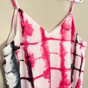 Calvin Klein White Spaghetti Strap Camisole with Pink & Black Tye Dye