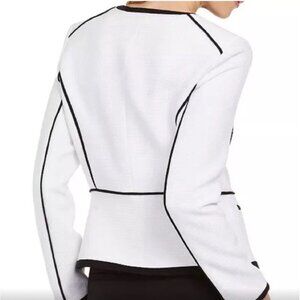 Calvin Klein White With Black Piped Trim Pique Jacket/Blazer Woman’s Size 2