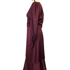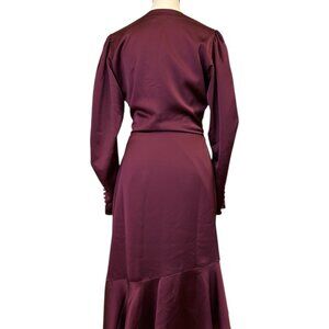 Calvin Klein Wine Coloured Satin Dress with Puff Sleeves (S)