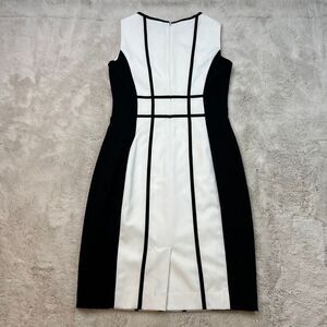 Calvin Klein Womans Black White Sleeveless Sheath Dress Size 4 Slimming Office