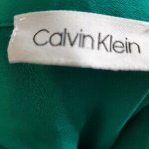 Calvin Klein Womans Button Up Top Teal Small Solid Sleeveless Collared Office