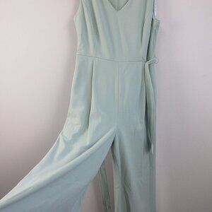 Calvin Klein Women Sleeveless Jumpsuit 14 Green Belted Cropped Casual Luxury 716