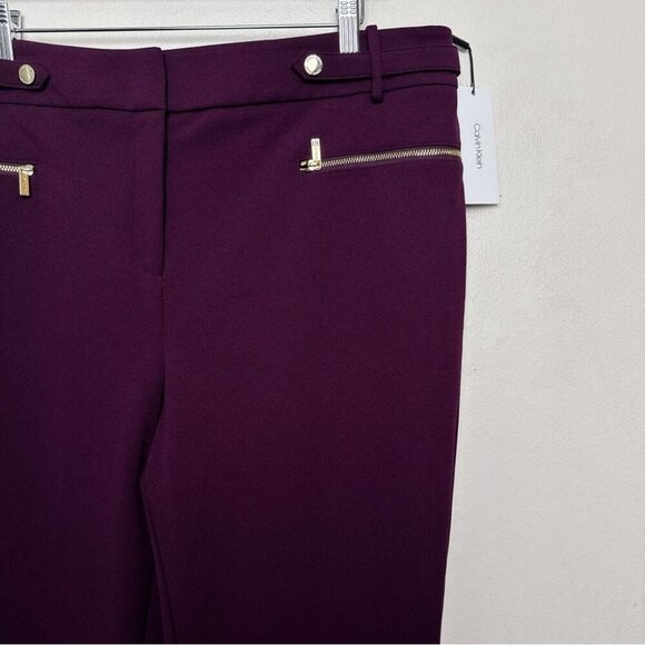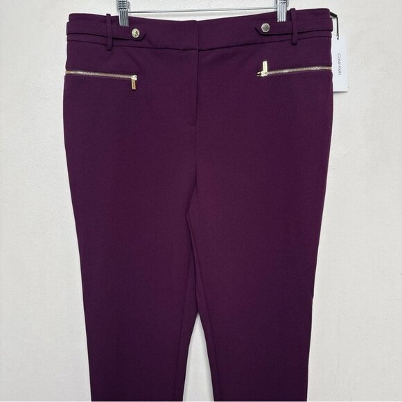 Calvin Klein Womens 16 Stretch High Waist Straight Leg Pants Purple
