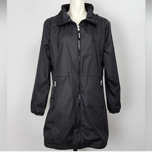 Calvin Klein Women's 3/4 Length Black Nylon Hooded Jacket Fleeced Lined Size M