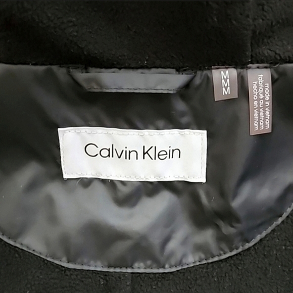 Excellent pre-owned condition, sporty casual Calvin Klein women's black nylon fleece-lined 3/4 length zip-up jacket with cinchable waist and two zippered pockrts, size medium.