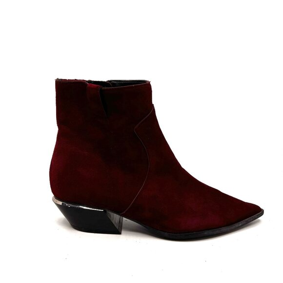 Calvin Klein Womens Ankle Boots Size 9 Nanuka Bordeaux Suede Pointed Toe Red