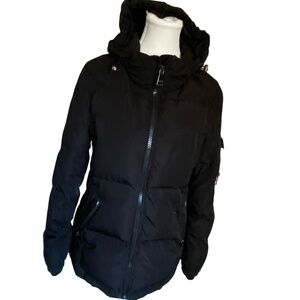 Calvin Klein Womens Black Downfill Puffy Hooded Winter Coat. Sz S
