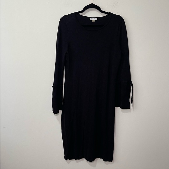 Calvin Klein Women’s Black Knit Dress Tie Sleeve Detail formal party Size M
