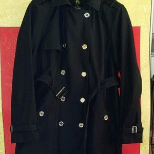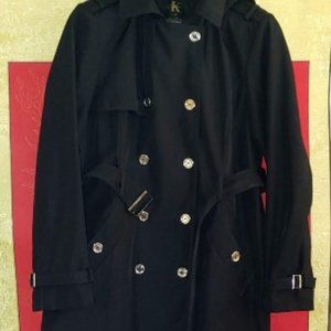 Calvin Klein Women's Black Trench Coat. After I posted this item, I used it maybe twice. It is in like new condition. I no longer have extra button that was attached to the inner tag. All the beautiful gold buttons are intact.