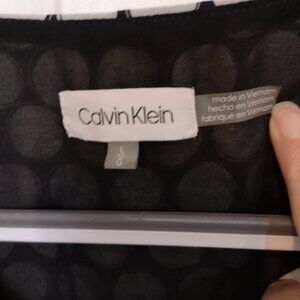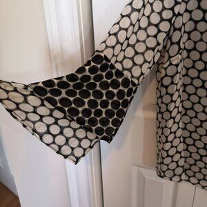 Beautiful Dot print Long-Sleeve layered Blouse in Black/White with Bell Cuffs. Size L by Calvin Klein