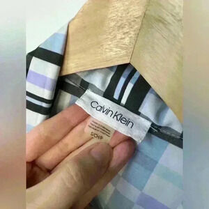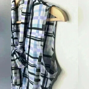Calvin Klein Women’s Blue Purple Plaid Sleeveless Button Blouse Bow Tie Small