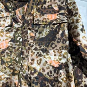 Add a touch of elegance to your wardrobe with this Calvin Klein animal print blouse. Featuring a mix of brown, cream, and pink tones, this lightweight, satin-feel top is perfect for both work and casual wear.