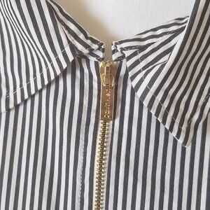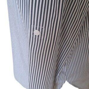 Calvin Klein Womens Long Sleeve Zip Up Collared Striped Shirt White/Black Large
