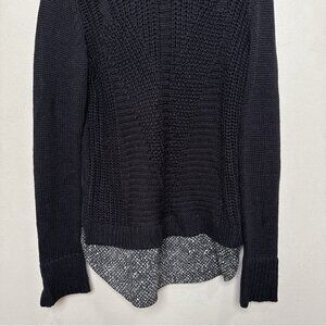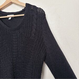 Calvin Klein Womens Medium Cable Open Knit Shirt Hem Sweater In Black Color