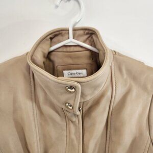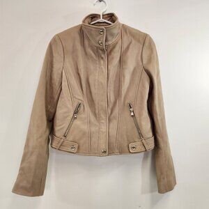 Calvin Klein Women's Moto Tan Genuine Leather Jacket Size Small