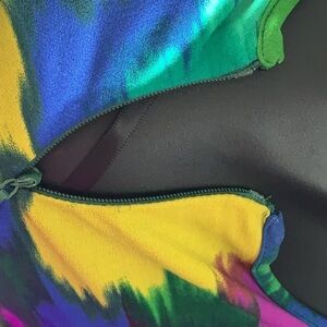 - Beautiful light weight dress rainbow multicolour print midi length dress,One side with cold shoulder sleeve and shoulder zipper