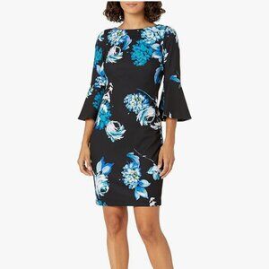 Calvin Klein Womens Petite 3/4 Peplum Sleeve Sheath Dress