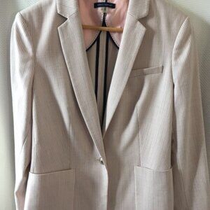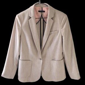 New and never worn. Sophisticated and versatile, this Calvin Klein women’s blazer in a soft pink hue features subtle black lines woven throughout the fabric — a refined detail that adds depth and texture when viewed up close.