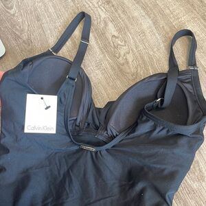 Calvin Klein Womens Solid Twist Over Shoulder One Piece Swimsuit Tummy Control