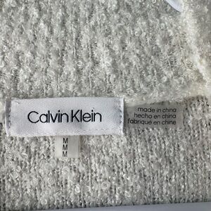 Calvin Klein Womens White/Cream Crewneck Sweater Medium Cozy Fluffy Fall