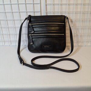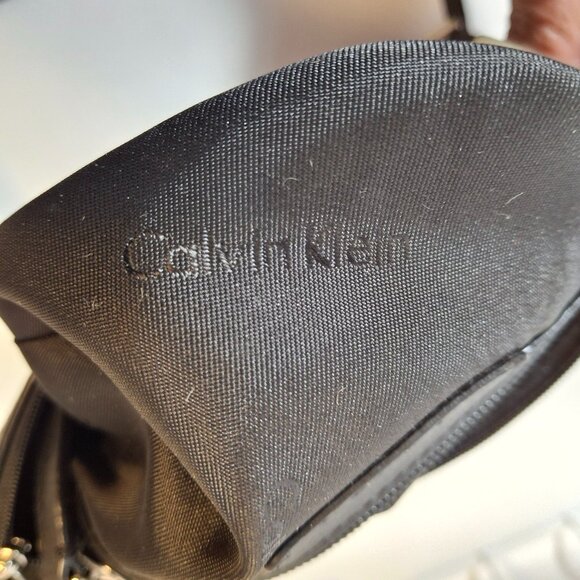 Interior: One Compartment Purse, One Zippered Interior Pocket, One Slip Interior Pocket, Calvin Klein Logo Branded Black Lining