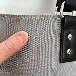 Stylish Calvin Klein tote bag. Features sturdy black handles. Perfect for everyday use. Calvin Klein bag in gray synthetic canvas tote black synthetic leather. Tiny scratch please review pics,