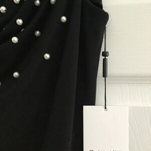 Calvin Klein black dress with white faux pearls in the neckline size 4