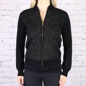 NWT, in perfect condition. Stay warm on the patio this summer with this bomber style sweater. It has metallic gold threading all through the front and back. It has a matching gold zipper. It's a really cool piece; edgy but still glam! I'm a size S and it fits me well. Would be suitable for a size XS, too.