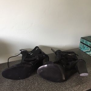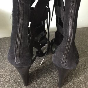 Calvin Klein black suede cage heeled boots, NWT, mint, size US 8.