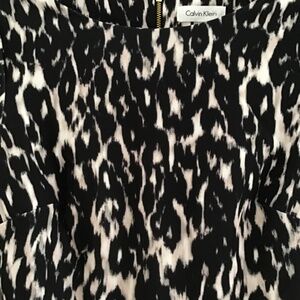 Calvin Klein black/white/light pink leopard print bell sleeve dress size 4