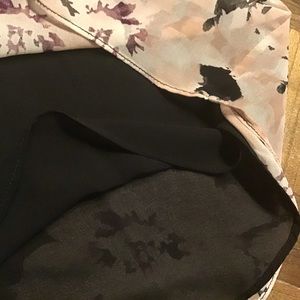 SUPER flowy. Hides everything and drapes nicely. Too big for me now. It is a M but I would say it is more M-L. Looks great over black slacks or a black skirt. The light pink with the black is a nice colour combination.