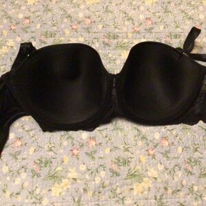 36D. Black. Customized lift strapless. Can be worn with or without straps. Two of the bras have had the label cut out. Details printed on bra.