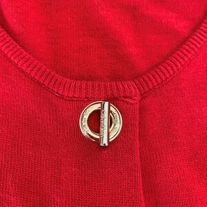 Calvin Klein cardigan, chili pepper red, toggle close, updated silhouette, sz M