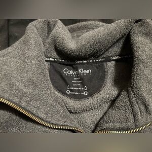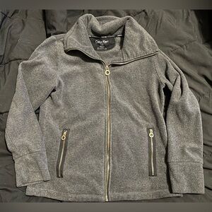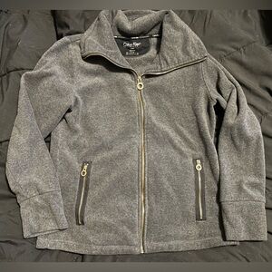 Calvin Klein fleece jacket grey with gold accents size medium zipper pockets