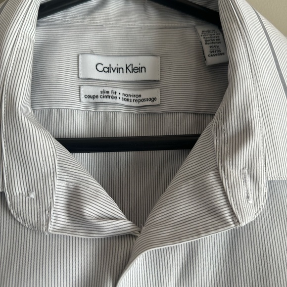 Calvin Klein men’s pinstripe, slim fit, non iron, 15 1/2, 34/35, NWOTS