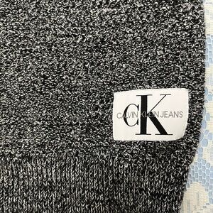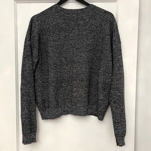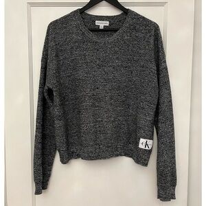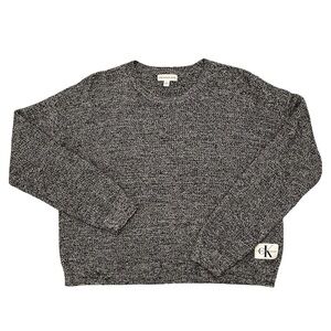 Gorgeous Calvin Klein oversized sweater with a short torso or long crop length. Beautiful heather variegated cotton knit. Loosely ribbed cuffs & hem with crew neck.