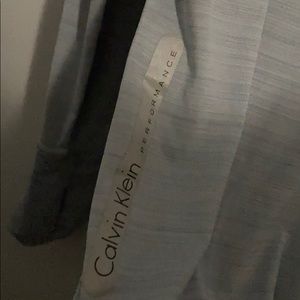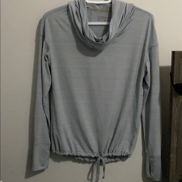Calvin Klein performance top in grey. Cool hood feature and moisture wicking technology.