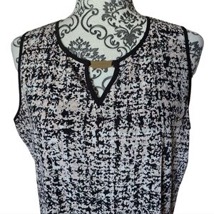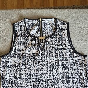 Calvin Klein pink and white sleeveless blouse black trim size large