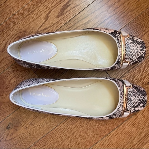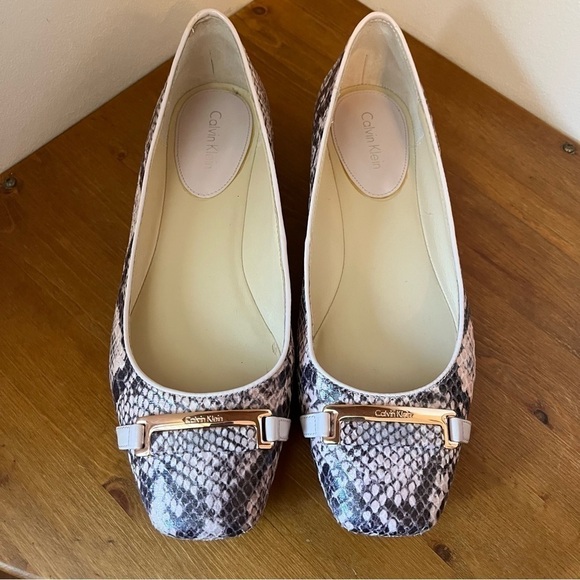 Calvin Klein pink grey ballet flats . Light pink snakeskin .