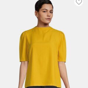 A high neckline and pleated volume on the sleeves define this desk-ready top.