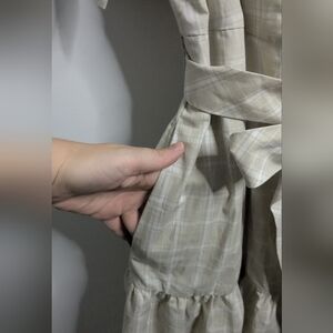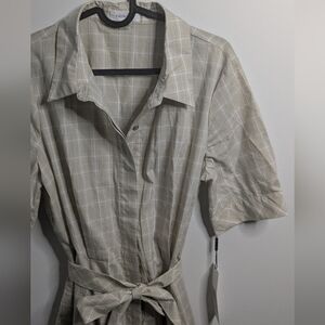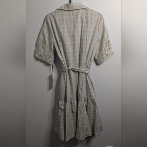 NWT Calvin Klein shirt dress with tie waist, pleated sleeves and tiered silhouette. Cotton blend, machine washable (cold)