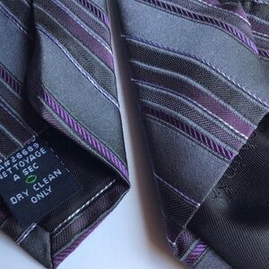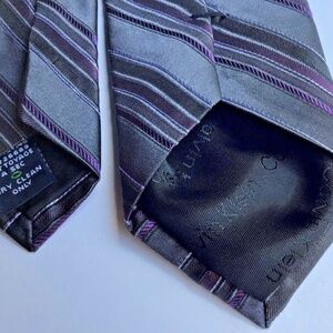 Calvin Klein skinny grey with purple stripes all silk Tie made in USA 🇺🇸