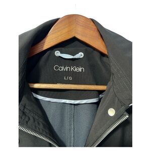 Barely worn like new black Calvin Klein spring/fall jacket in size large pit to pit 19.75" shoulder to bottom 37" (closet)