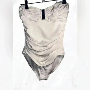 Calvin Klein strapless bathing suit ruched white bandeau all in one swimsuit 6