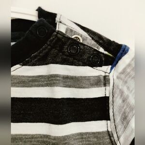 1 crew neck blue, green, teal, gray, and white horizontal stripes with Calvin Klein Jeans logo