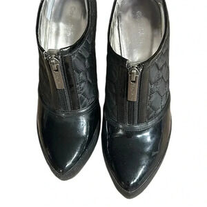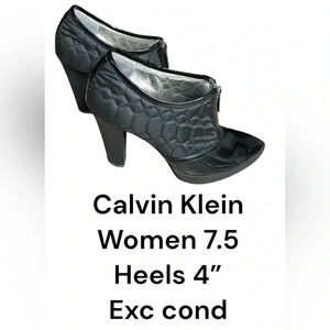Calvin Klein women booties 7.5 chunky high heel,black quilt,moto,goth,biker,club