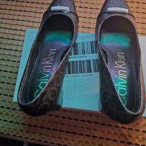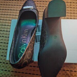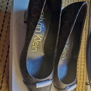 Modern and chic, the Calvin Klein dress pump is an instant wardrobe staple. The pumps feature a sturdy block heel, embellished upper, and stylish pointy toe.